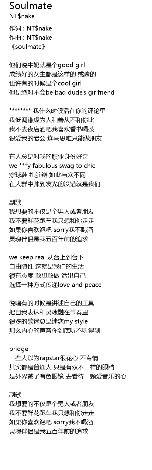| 作词 : NT$nake | |
