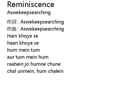 | 歌曲 | Reminiscence |