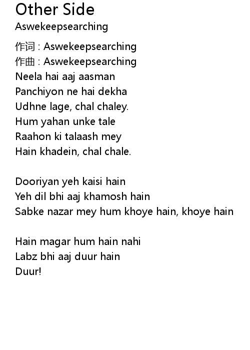 | Sabke nazar mey hum khoye hain, khoye hain | |