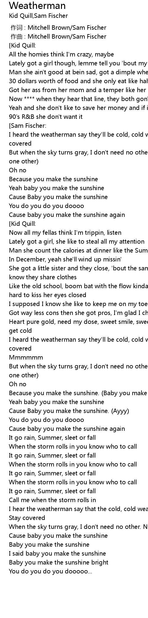 | [02:16.53] | Cause Baby you make the sunshine. Ayyy |