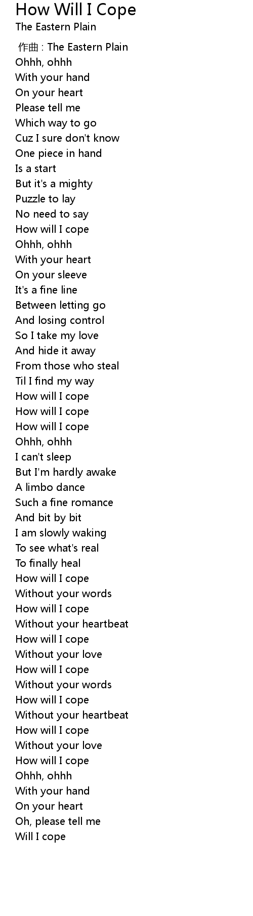| [02:47.978] | How will I cope |