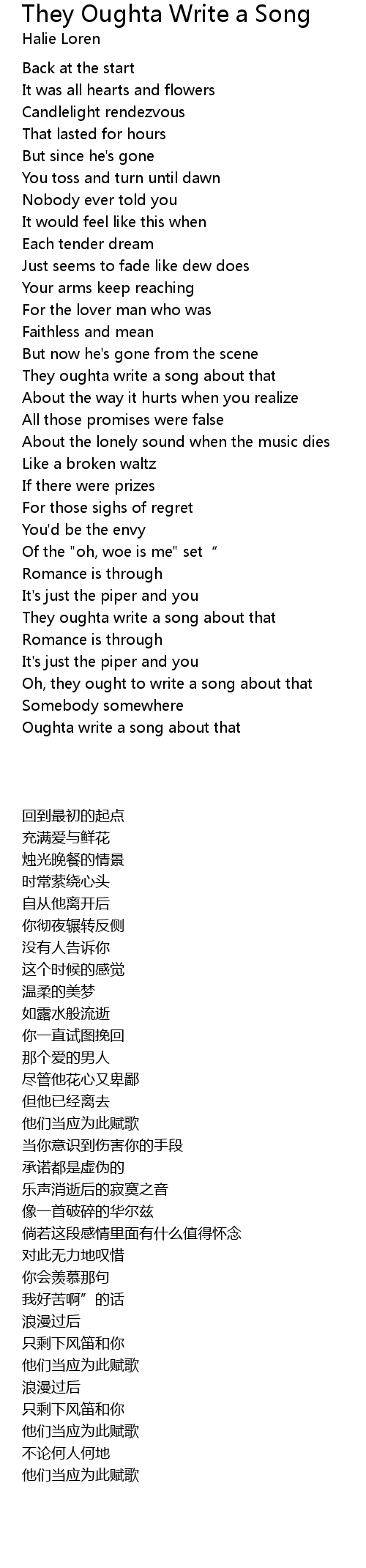 | 歌曲 | They Oughta Write a Song |