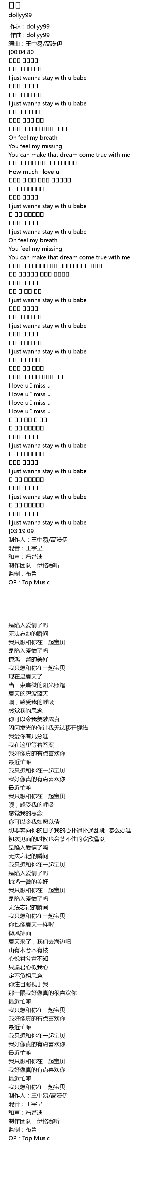 | [00:00.000] | 作词 : dollyy99 |