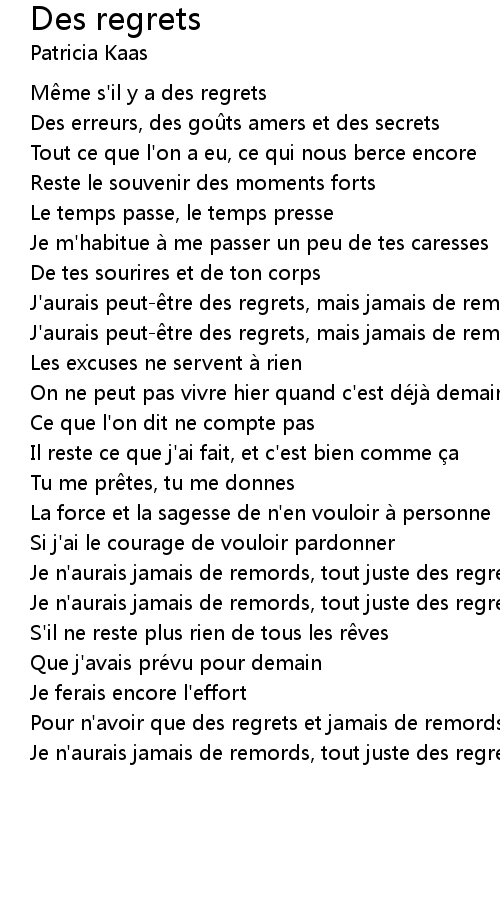 | [00:58.27] | J' aurais peut tre des regrets, mais jamais de remords |