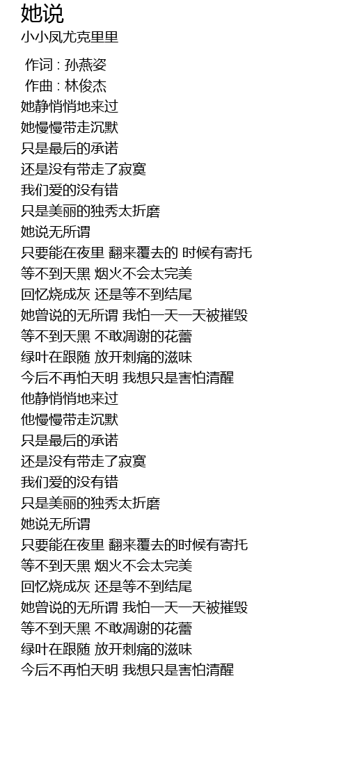| [01:33.068] | 她曾说的无所谓 我怕一天一天被摧毁 |