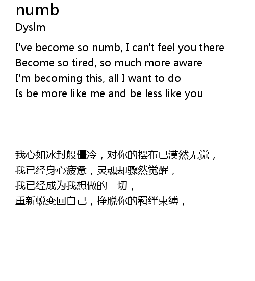 | [00:19.20] | I've become so numb, I can't feel you there |