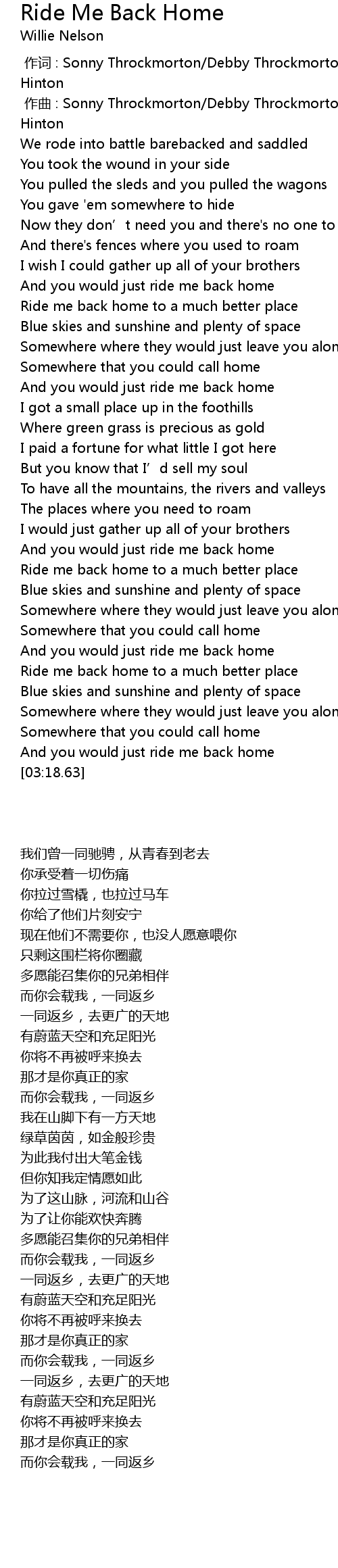 | [00:01.000] | zuo qu : Sonny Throckmorton Debby Throckmorton Joe Manual Lucinda Hinton |