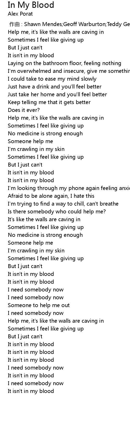 | 歌曲 | In My Blood |