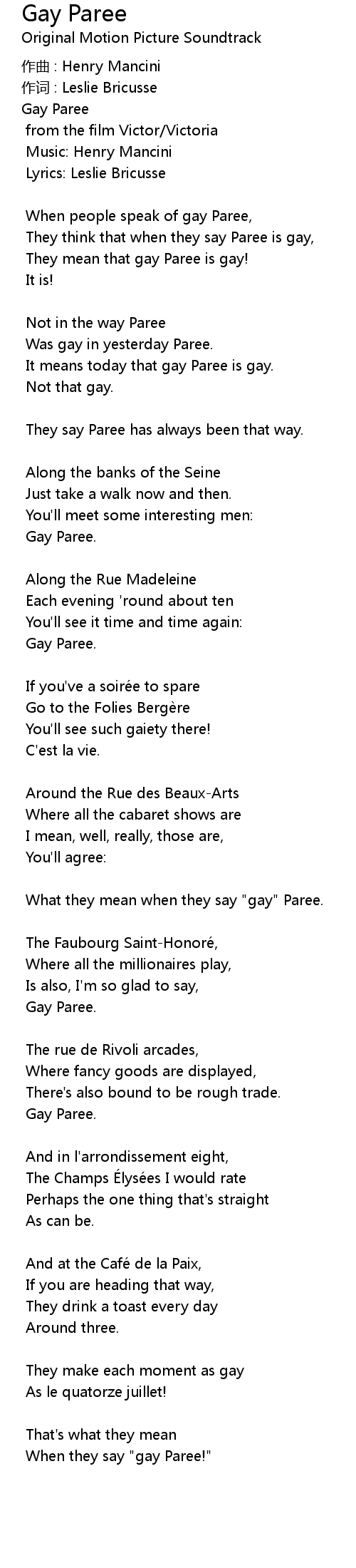 | 歌曲 | Gay Paree |