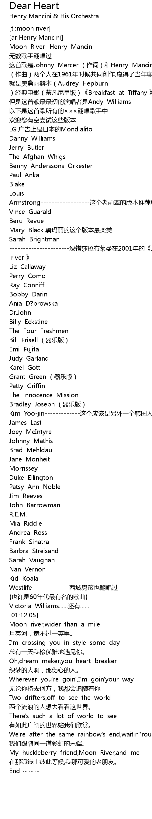 | [02:17.63] | My huckleberry friend,Moon River,and me |