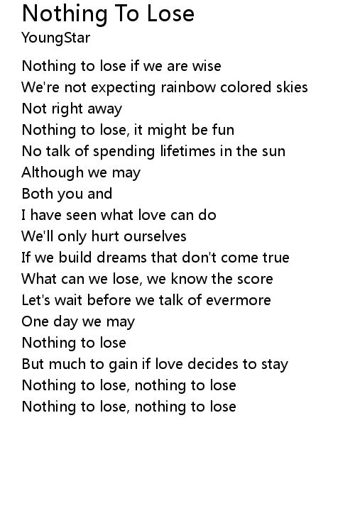 | Nothing to lose, nothing to lose | |
