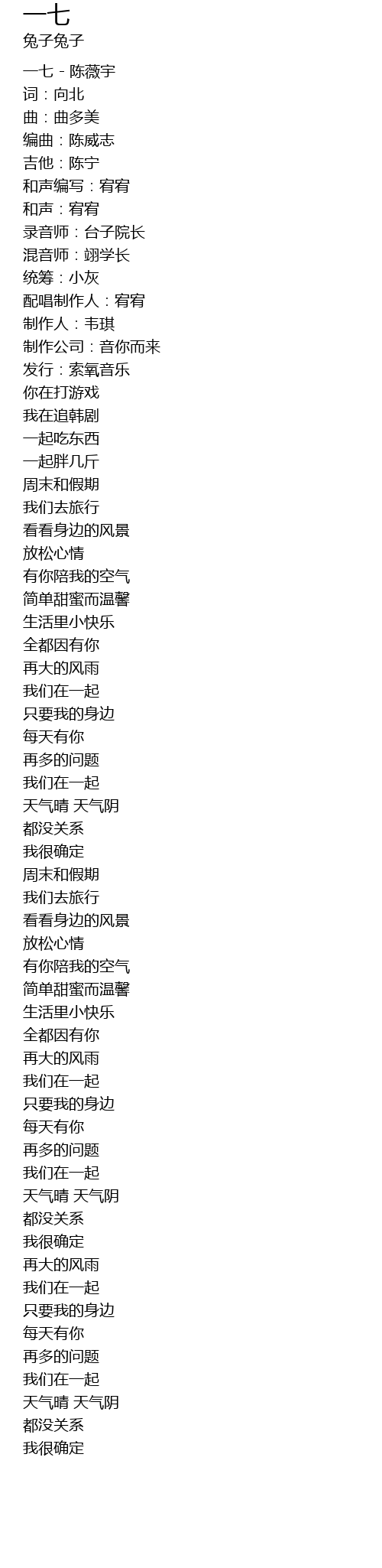| [00:00.27] | 一七 - 陈薇宇 |