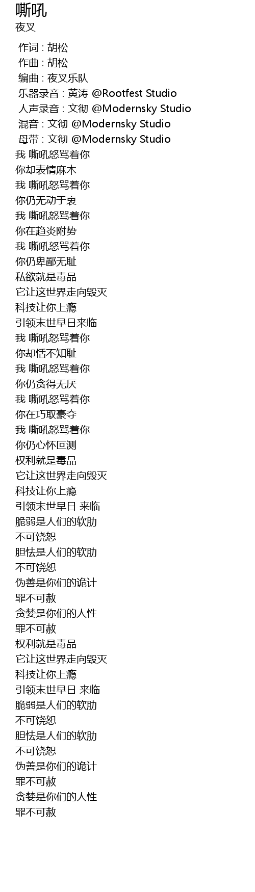 [00:04.000] 人声录音 : 文彻 @Modernsky Studio