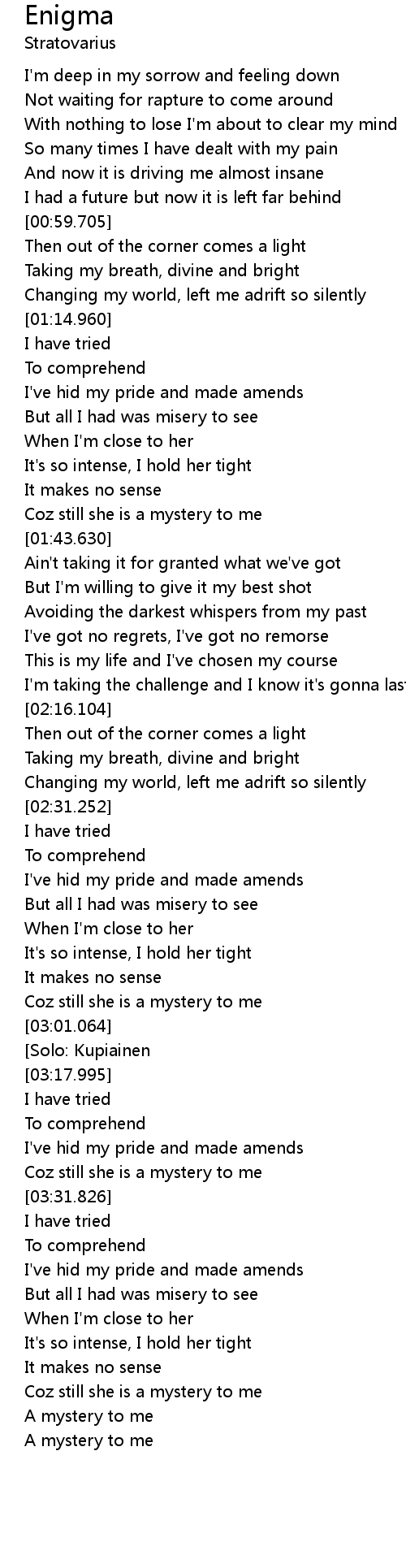 Coz still she is a mystery to me |
