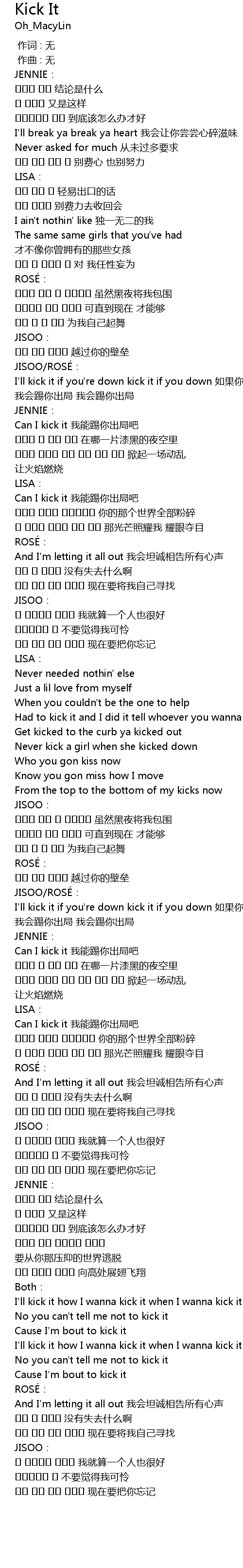 | [01:47.576] | I' ll kick it if you' re down kick it if you down ru guo ni rang wo shi wang wo hui ti ni chu ju wo hui ti ni chu ju |