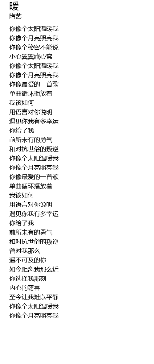 | [00:04.840] | ni xiang ge tai yang wen nuan wo |