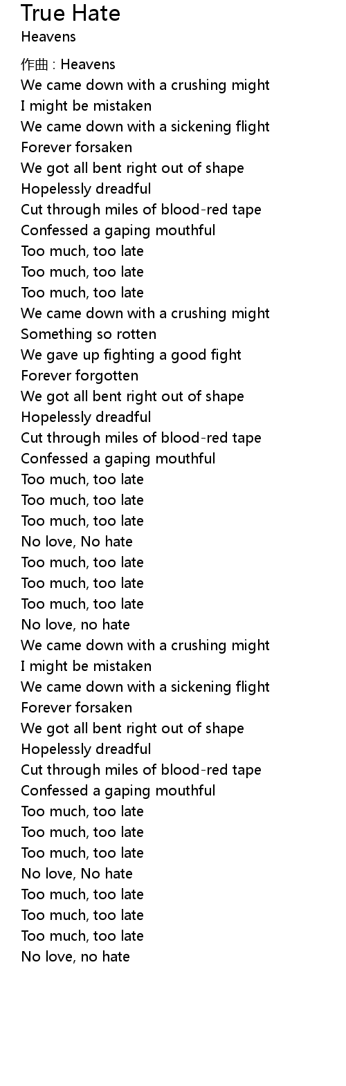 | 歌曲 | True Hate |