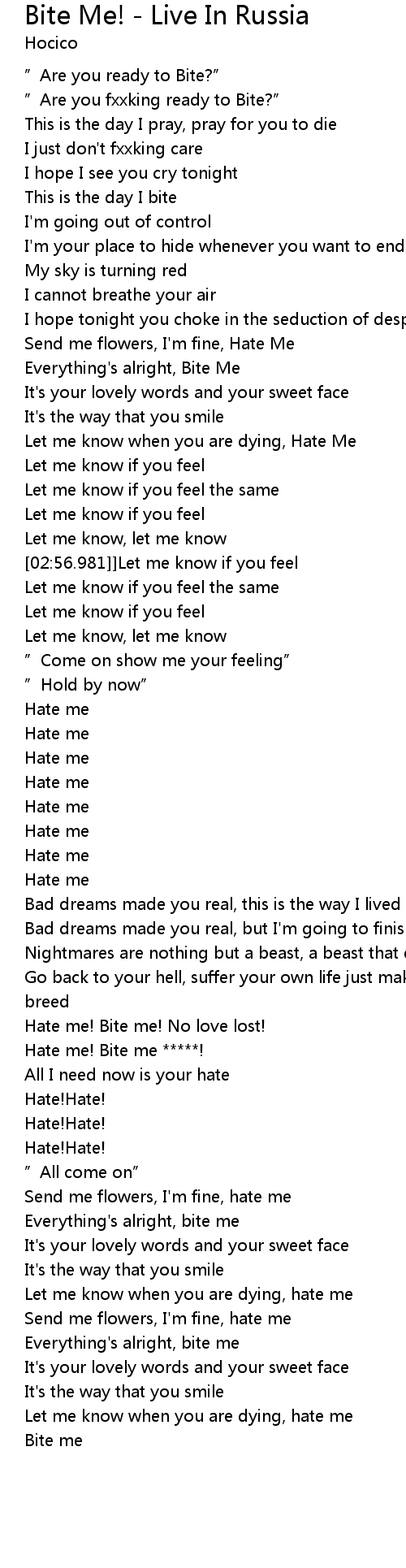 | [02:26.028] | Let me know when you are dying, Hate Me |