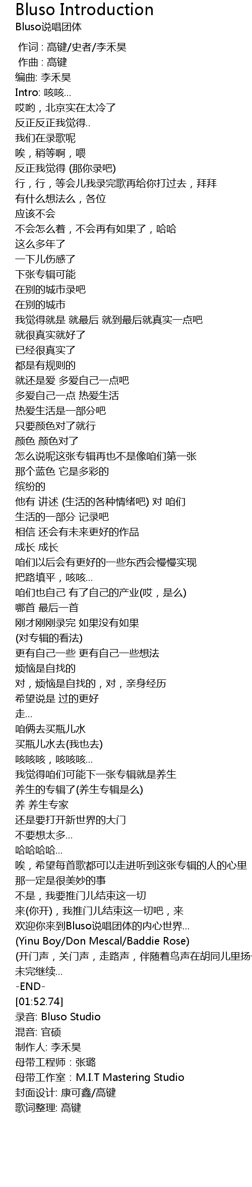 | [01:49.36] | 欢迎你来到Bluso说唱团体的内心世界... |