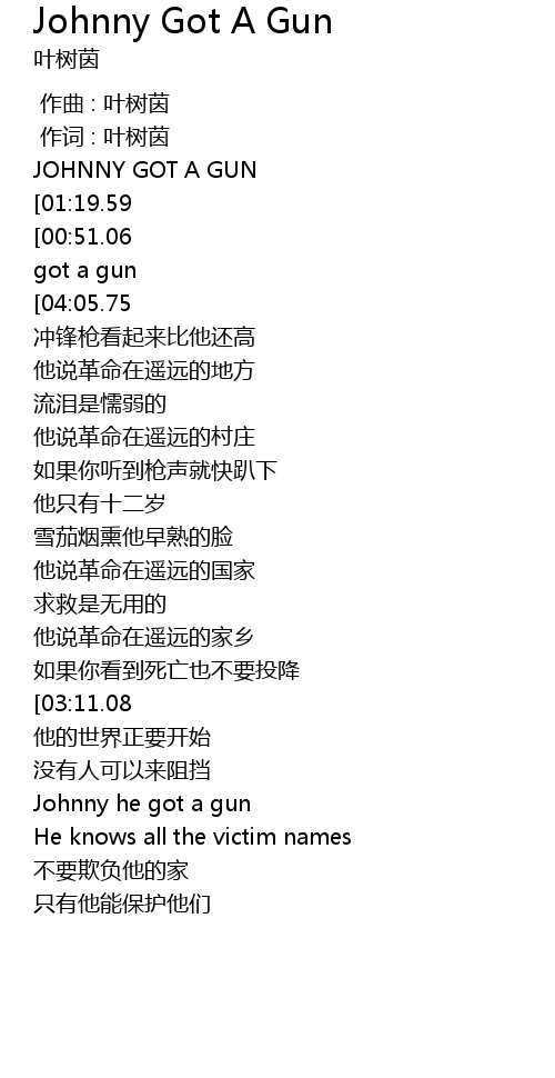 | [02:49.10] | Johnny he got a gun |