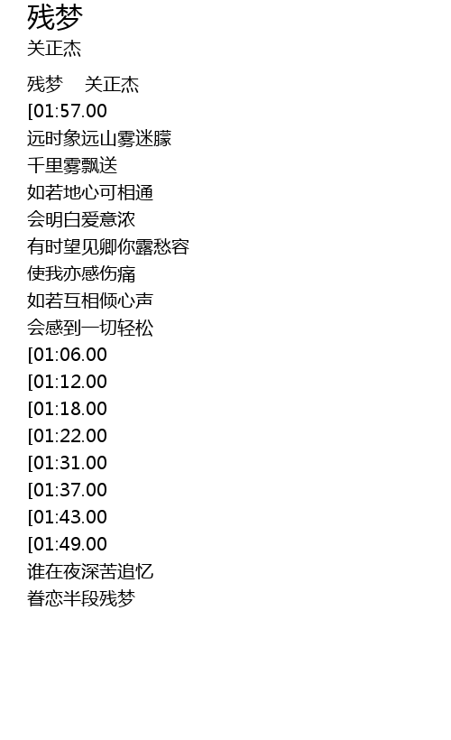 | [00:00.00] | 残梦 关正杰 |