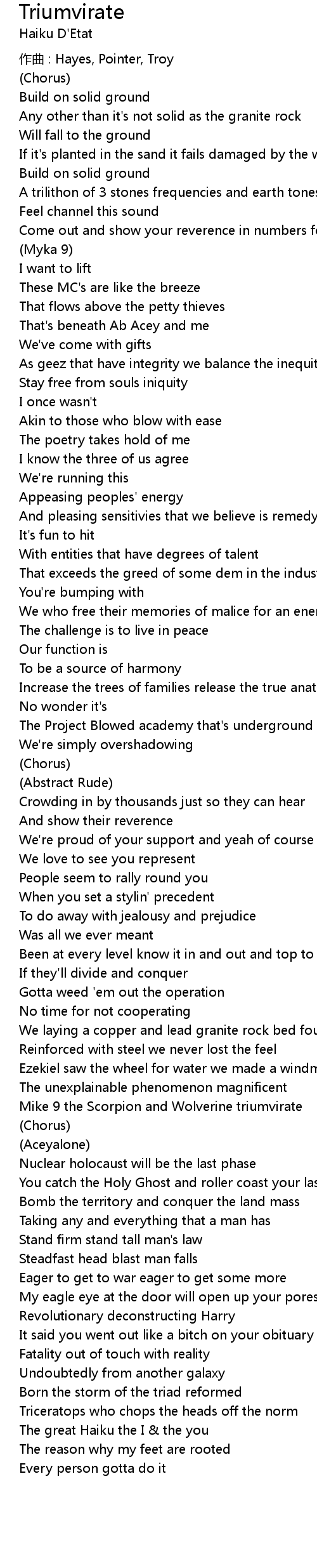 | 歌曲 | Triumvirate |