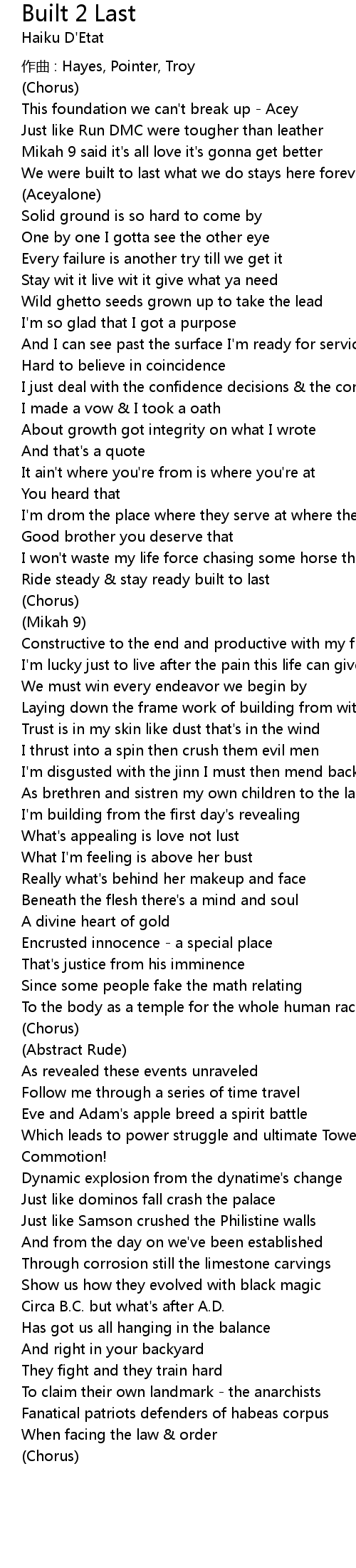 | 歌曲 | Built 2 Last |