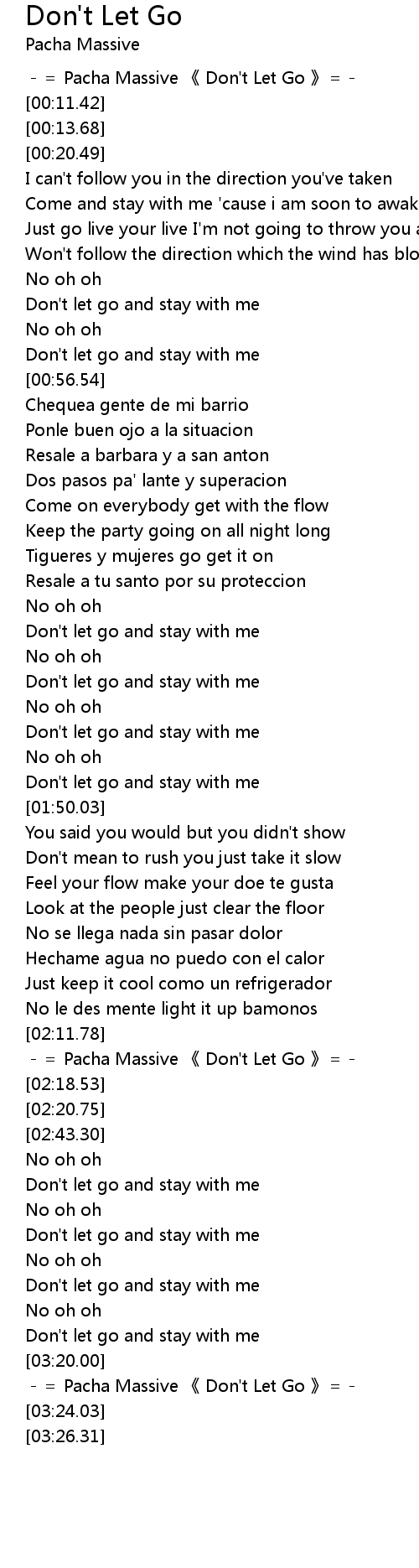 | [00:04.62] | -= Pacha Massive 《 Don't Let Go 》=- |