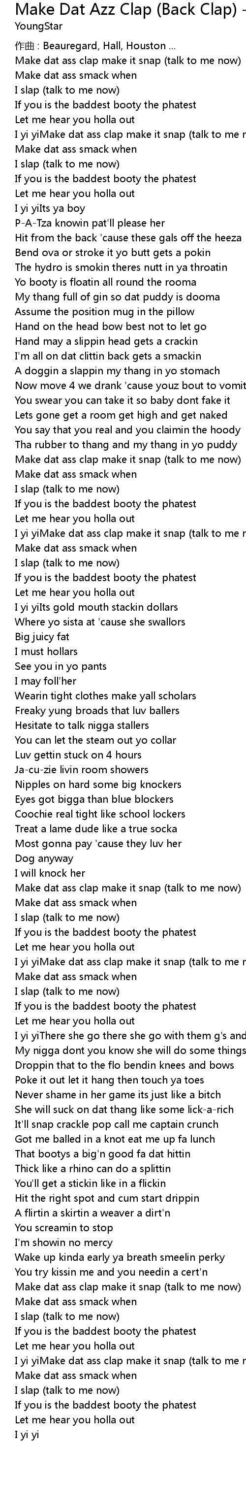 | I yi yiMake dat ass clap make it snap talk to me now | |