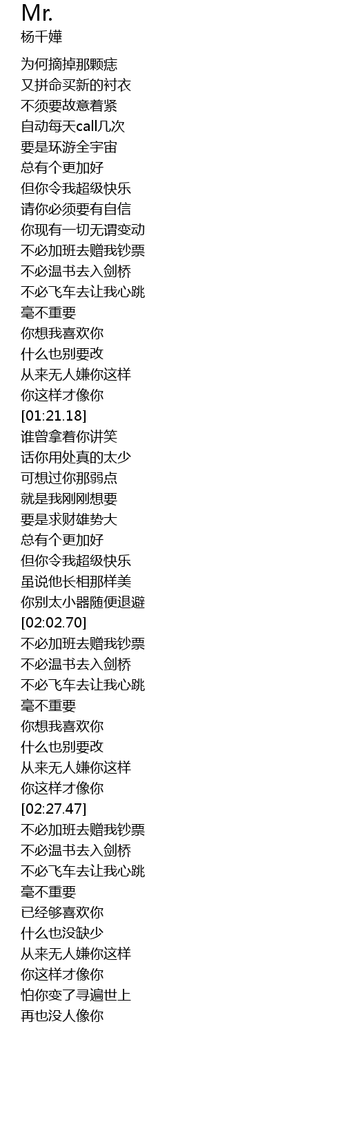 | 歌曲 | Mr. |