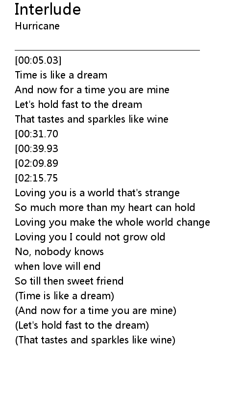 [02:22.15][02:09.89][00:44.10] What seem like an interlude now
