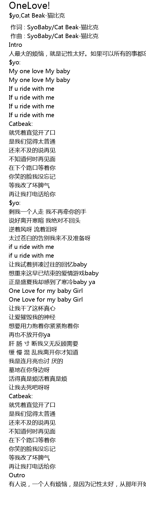 | [00:01.000] | zuo qu : SyoBaby Cat Beak mao bi ke |