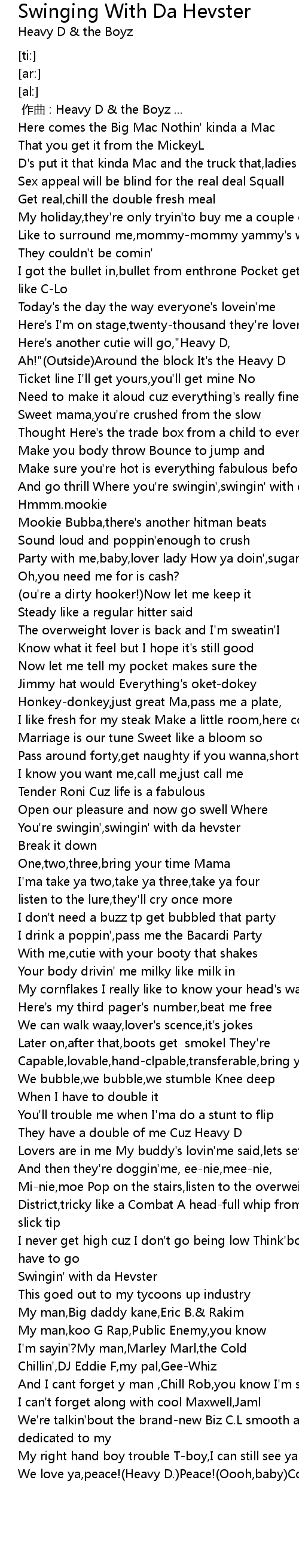 | [00:00.00] | 作曲 : Heavy D & the Boyz ... |