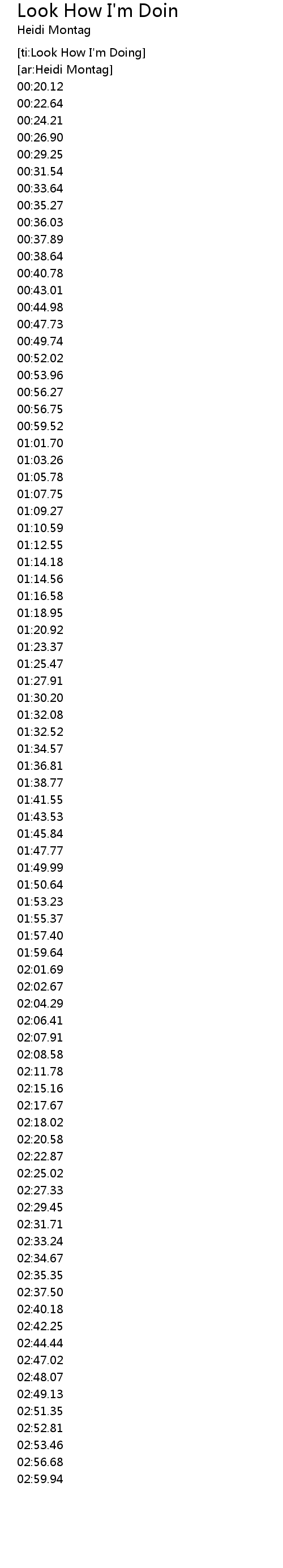 | [00:56.65]00:56.75] | Look at me baby how I' m doing |