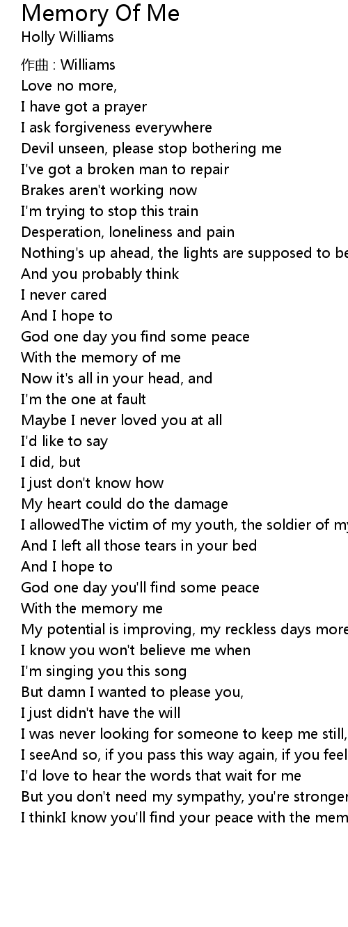 | 歌曲 | Memory Of Me |