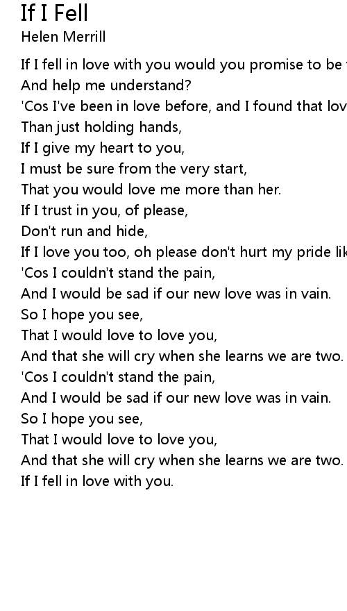 If I fell in love with you would you promise to be true, |