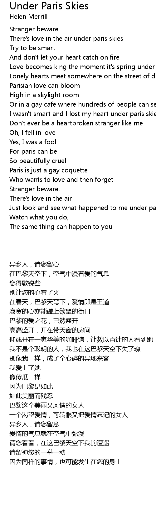 Just look and see what happened to me under paris skies |