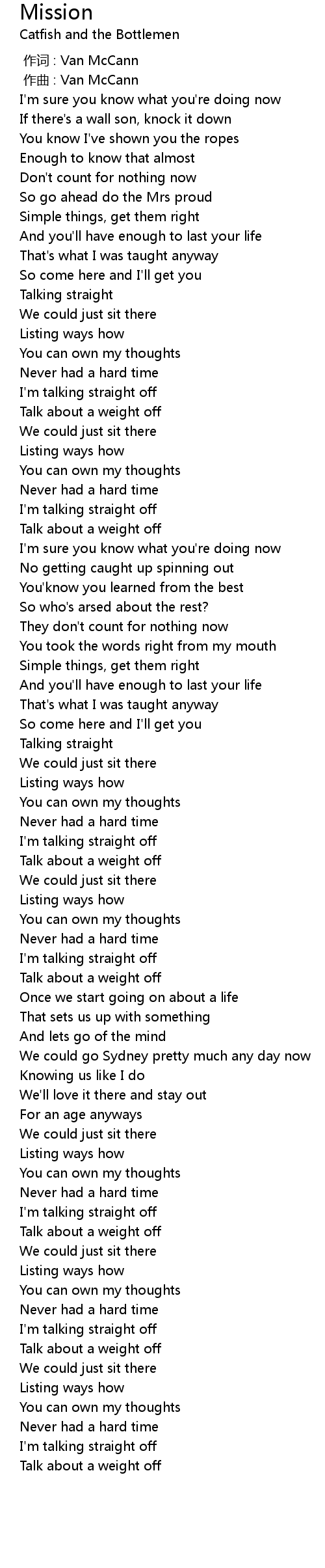 | [01:36.85] | Talking straight |