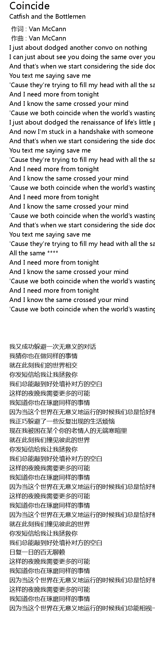 | [02:42.78] | ' Cause we both coincide when the world' s wasting time |