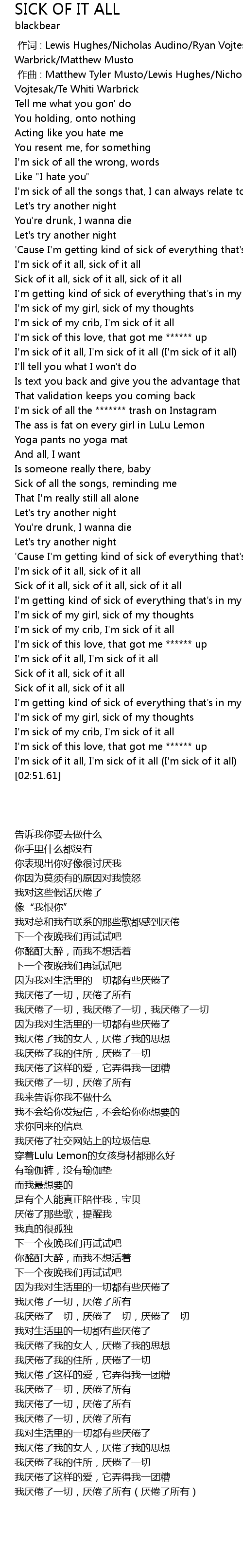 | [00:49.60] | Sick of it all, sick of it all, sick of it all |