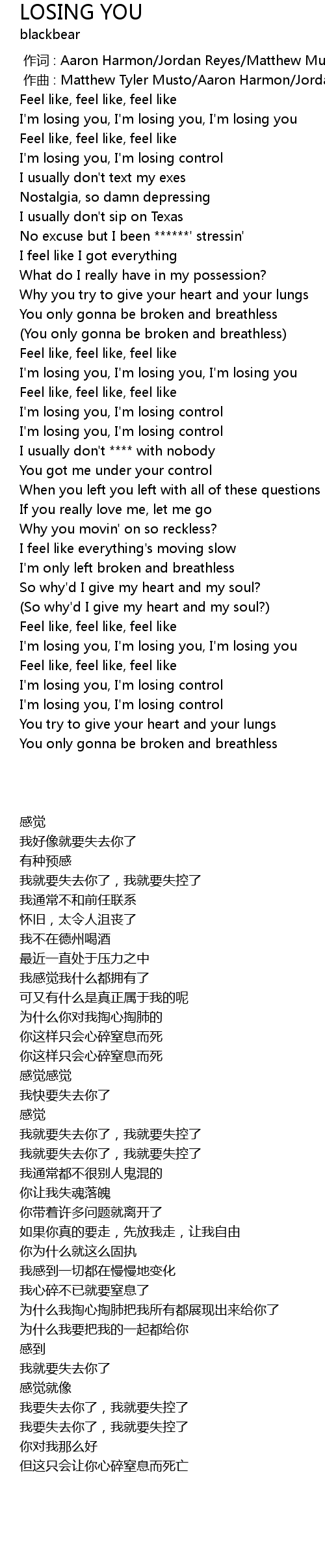 | [00:18.17] | I' m losing you, I' m losing you, I' m losing you |
