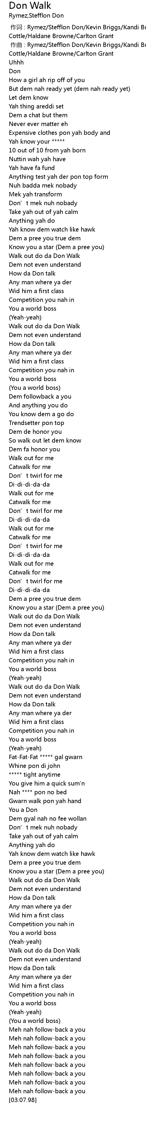 | [00:00.000] | 作词 : Rymez/Stefflon Don/Kevin Briggs/Kandi Burruss/Tameka Cottle/Haldane Browne/Carlton Grant |