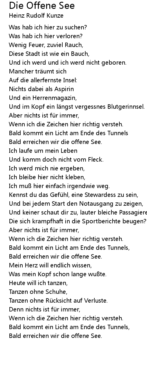 | Und keiner schaut dir zu, lauter bleiche Passagiere, | |