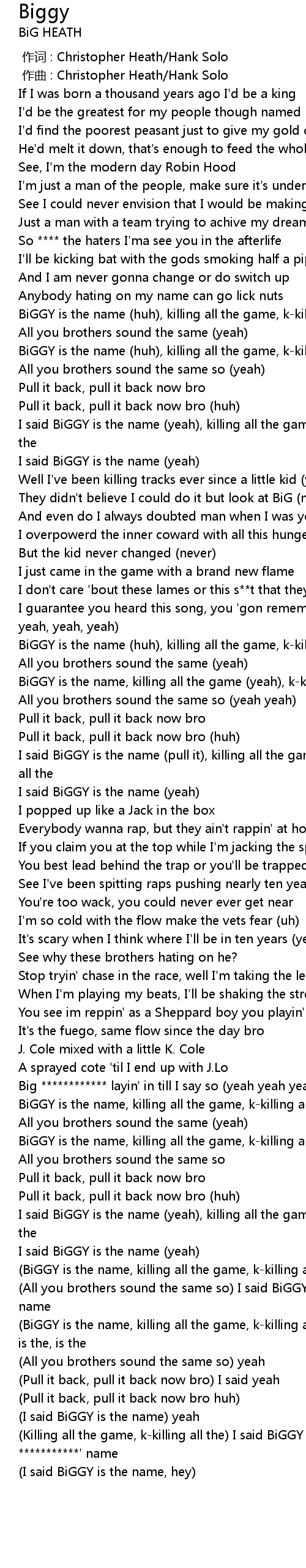 | [03:00.41] | (Killing all the game, k-killing all the) I said BiGGY is the ***********' name |