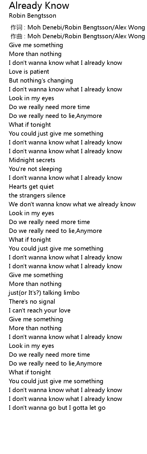 | [00:45.47] | I don' t wanna know what I already know |
