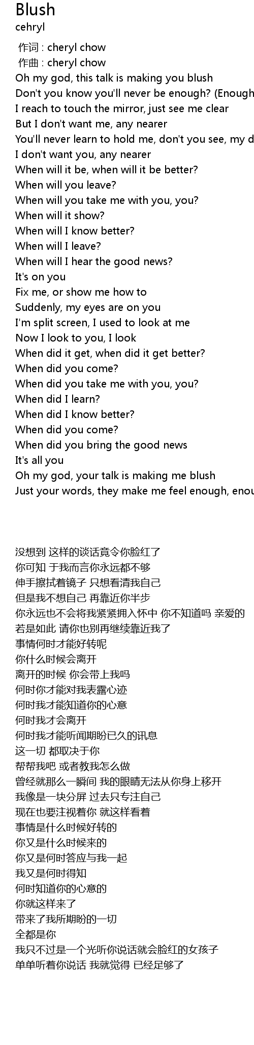 | [00:00.065] | 没想到 这样的谈话竟令你脸红了 |