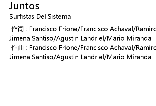 | [00:00.000] | 作词 : Francisco Frione/Francisco Achaval/Ramiro Vázquez/Mariel Jimena Santiso/Agustin Landriel/Mario Miranda |