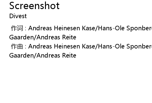 | [00:00.000] | 作曲 : Andreas Heinesen Kase/Hans-Ole Sponberg/Henrik Gaarden/Andreas Reite |