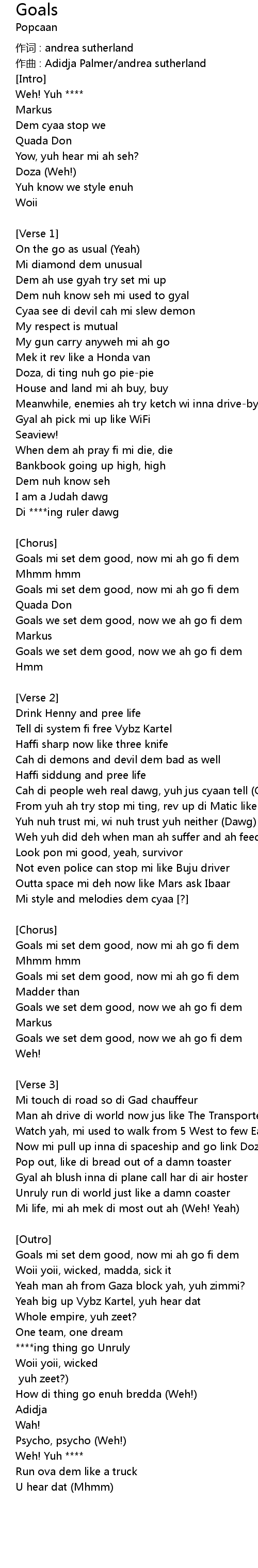 | 歌曲 | Goals |