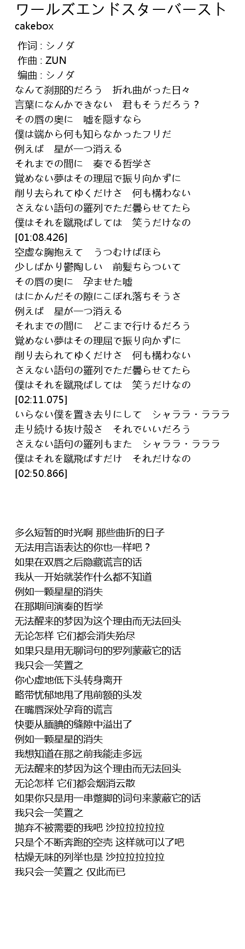 | [00:00.000] | 作词 : シノダ |